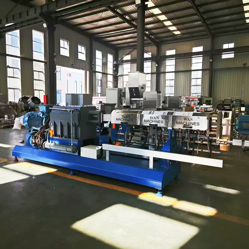 Equipment involved: Raw material grinder; Mixer; Screw Conveyor; Twin screw extruder; Air Conveyor; Multi layer dryer; Cooling Conveyor; Automatic packing machine