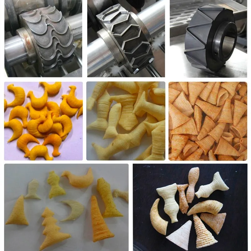 This Fried Bugles Chips Production Line makes fabricated bugles and other chips from double screw extruder.