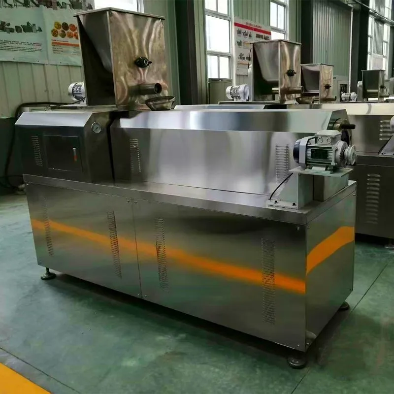 Corn Puff Extruder Machine adopts international advanced extrusion technology and is researched and developed in extrusion food industry field. This machine can use corn, rice, oat, bean, buckwheat and so on as the raw materials, through mixing,extruding, explanding, shaping, drying or frying, oil spraying, and seasoning technology, to produce various extrusion food.