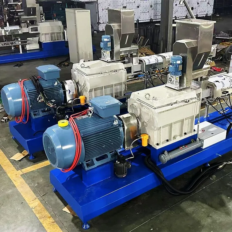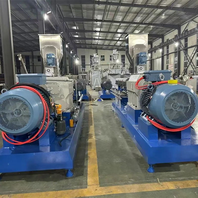 Function:cooking the raw materials and make them to the required shape and size of the pet food pellets by mould. The Twin screw extruder is made of the feeding system, extruding system, cutting system, heating system, transmission system and controlling system.