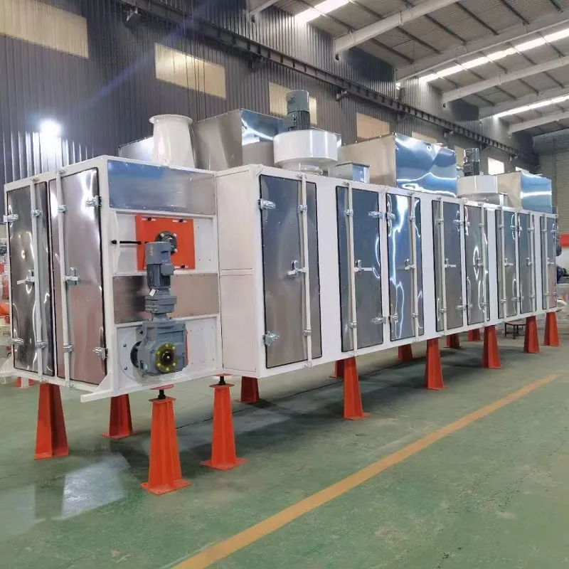 Function: Fish feed dryer machine is usually used in combination with fish feed extruder in the fish feed pellet line. Fish feed pellets are transported by the conveyor from fish feed extruder to the pellet dryer machine, then it will be drying on the mesh belt which is made of stainless steel. Pellets from extruder may content moisture around 15~20% with high temperature ,if the user wanna pack fish feed pellet for proper storage and marketing handling.Those pellets must be cooled and dried. Fish feed dryer machine is movable with multi-layer structure, which makes our dryer fast-drying & high-efficiency.The machine is suitable for the materials such as pet food,dog food,cat food,fish feed and others, for which the water contents are high and long drying time is requested. The machine owns the advantages of adjustable drying speed, high evaporation capacity and good product quality.
